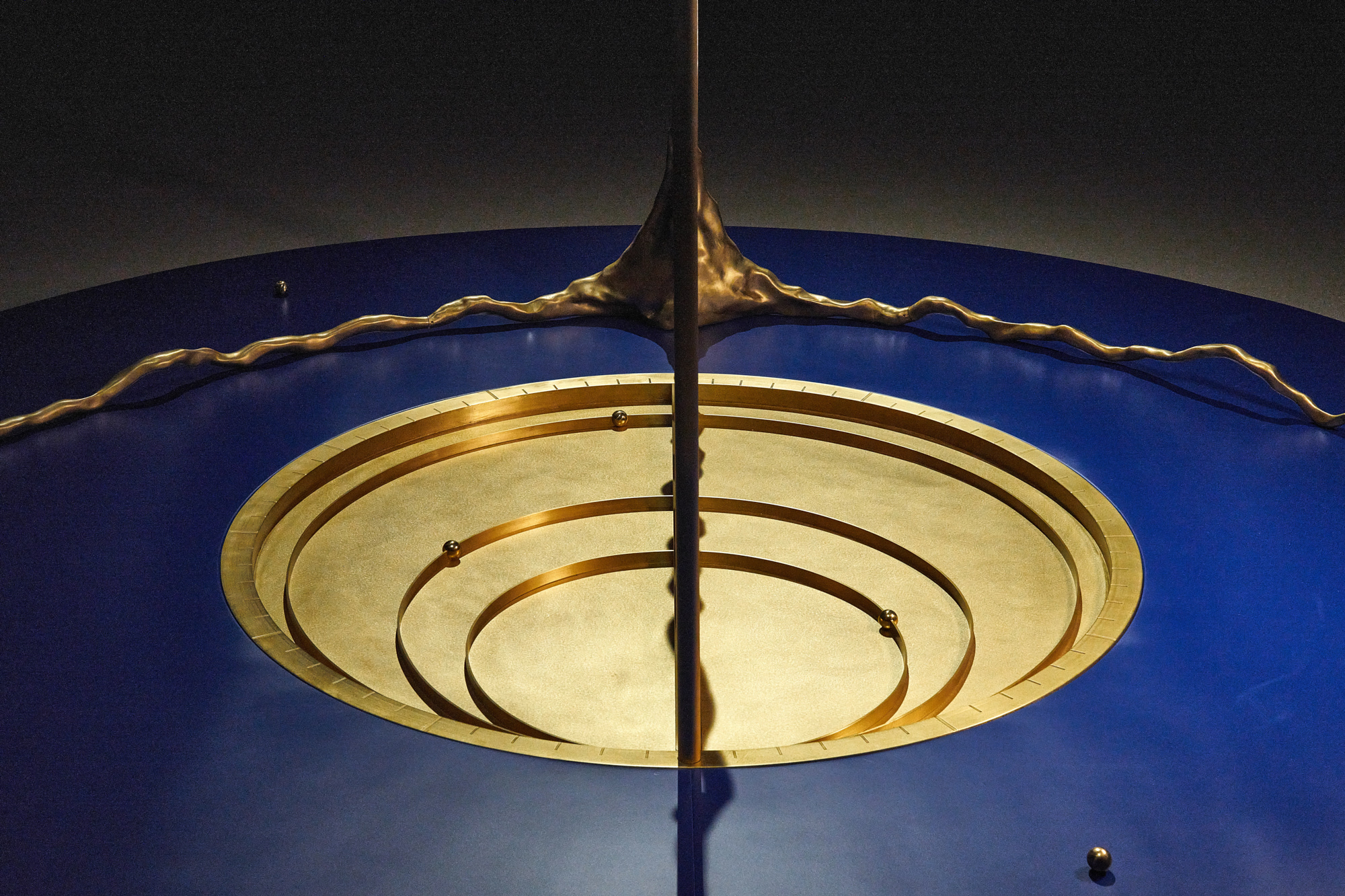 《星骨仪》系列受启于古人“近取诸身,远取诸物”的观象方法——白天阅读自己在日光下的影长,“以身为度”;夜晚观测天幕上的星斗,“圭臬星经”。融合了人的颅缝构造与古今中外的天文仪器,艺术家创造出一系列通向神秘秩序的金色装置。其中,鲜活的骨相写生与精密的造型结构分别借由人的身体与理性两种度量衡实现了我们对宇宙的观看。人体与星空的关系,在这组作品中,既可以作为解谜的工具,同样也是秘密本身。